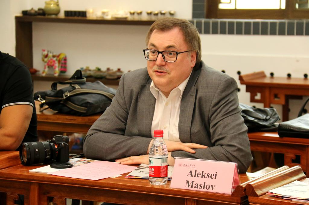 马斯洛夫教授简要介绍了俄罗斯高等经济大学的历史沿革及办学情况,他表示,随着中国“一带一路”倡议的不断推进,横跨亚欧两大洲的俄罗斯与中国之间的交往日益密切,两国之间的商贸合作项目增加、旅游市场不断发展壮大,越来越多的俄罗斯人开始学习汉语,汉语及中国文化在俄罗斯文化生活中扮演了越来越重要的角色。马斯洛夫教授介绍说,近年来俄罗斯高等经济大学已经与北京师范大学、上海大学、复旦大学等中国高校开启了校际合作交流,积累了一定的合作经验,学校希望继续开拓中国留学生市场,积极探索与中国高校的合作培养模式,开展更多互利共赢的合作项目。他表示,通过近期与52av