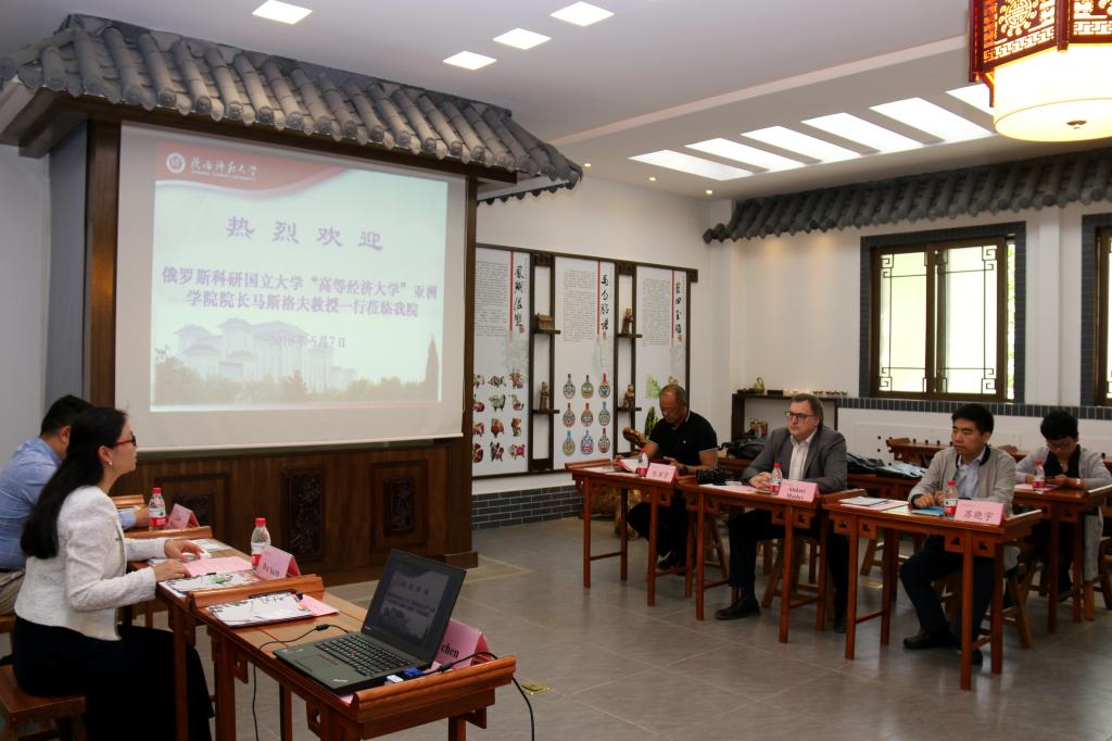 外国留学生奖学金生的招收录取情况,并表示俄罗斯高等经济大学有意向来年向我校推荐高质量的学历留学生在校就读。