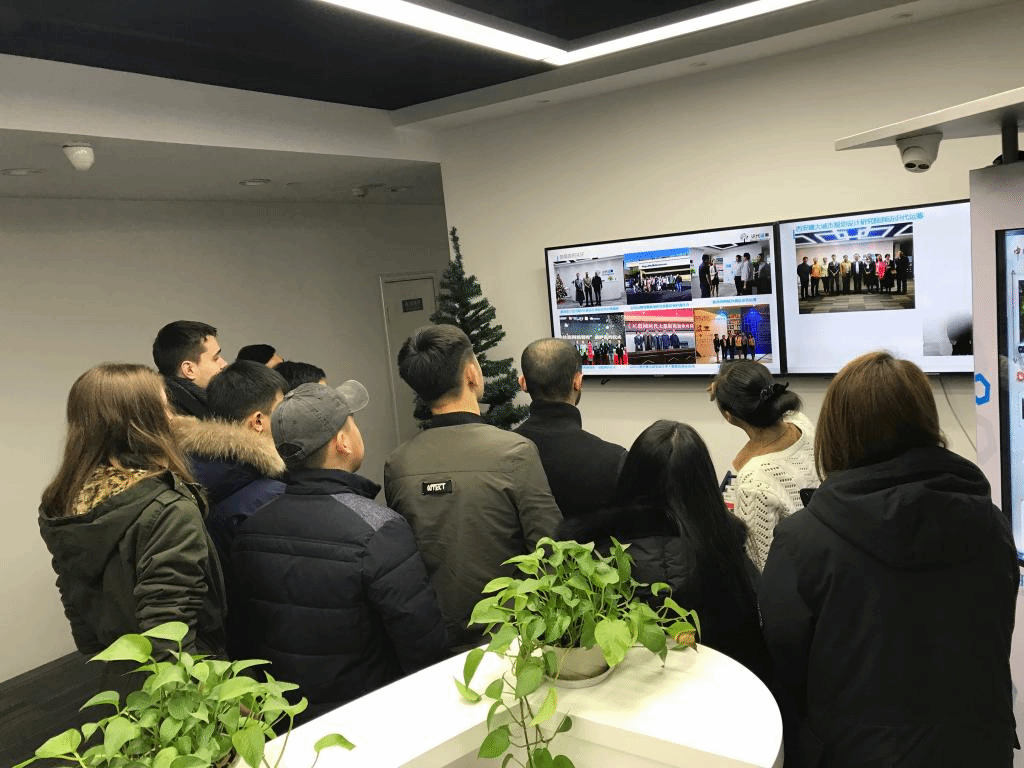 下午3:00,师生一行到达识代运筹,公司行政人力总监駱颖女士、销售经理惠大庆先生在门口迎接。简单的欢迎词之后,駱颖女士为同学们介绍了公司概况,展示了“智慧秦岭”旅游大数据系统,然后,带领同学们参观公司的办公区。在演示室,駱颖女士向同学们展示了六块大型电子屏幕上以秒速更新的各类大数据,引来一阵阵惊叹。接下来,大家来到了会议室,销售经理惠大庆先生为同学们详细介绍了识代运筹自主研发的大数据获取与分析平台,以及公司成立至今的业务发展情况。同学们对“消费者画像”的分析完成过程非常感兴趣,因为大家看到了自己刚学过的“分析消费者市场”“市场细分”等理论知识是如何实践化的。辛蕊、艾迪代表同学们提问,大家展开了热烈的讨论。座谈即将结束时,公司创始人之一苏媛女士前来作了总结发言,对同学们选择“商务”作为大学学习的专业非常赞赏,鼓励同学们将来为发展中外经贸往来贡献力量!
