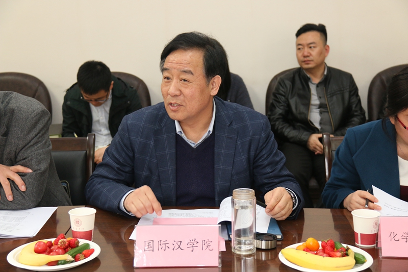 来华留学生工作质量报告》作了解读,并重点对报告中涉及各学院、中心、研究所的内容进行了具体的分析和说明。