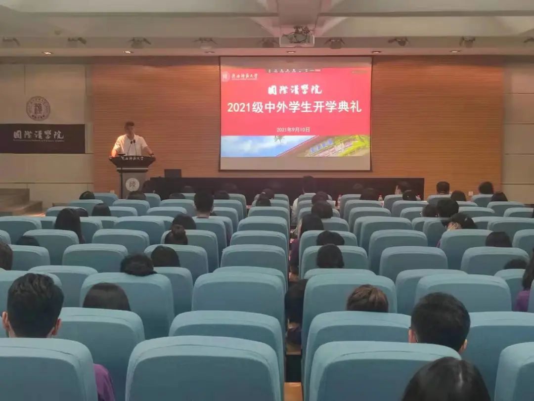 2021级中外学生开学典礼在雁塔校区崇鋈楼一层学思堂举行。任晓伟副校长,国际交流与合作处、党委学工部、党委研工部主要负责人,学院党政领导,教师代表以及2021级中外学生参加了典礼。典礼由党总支副书记张昊主持。