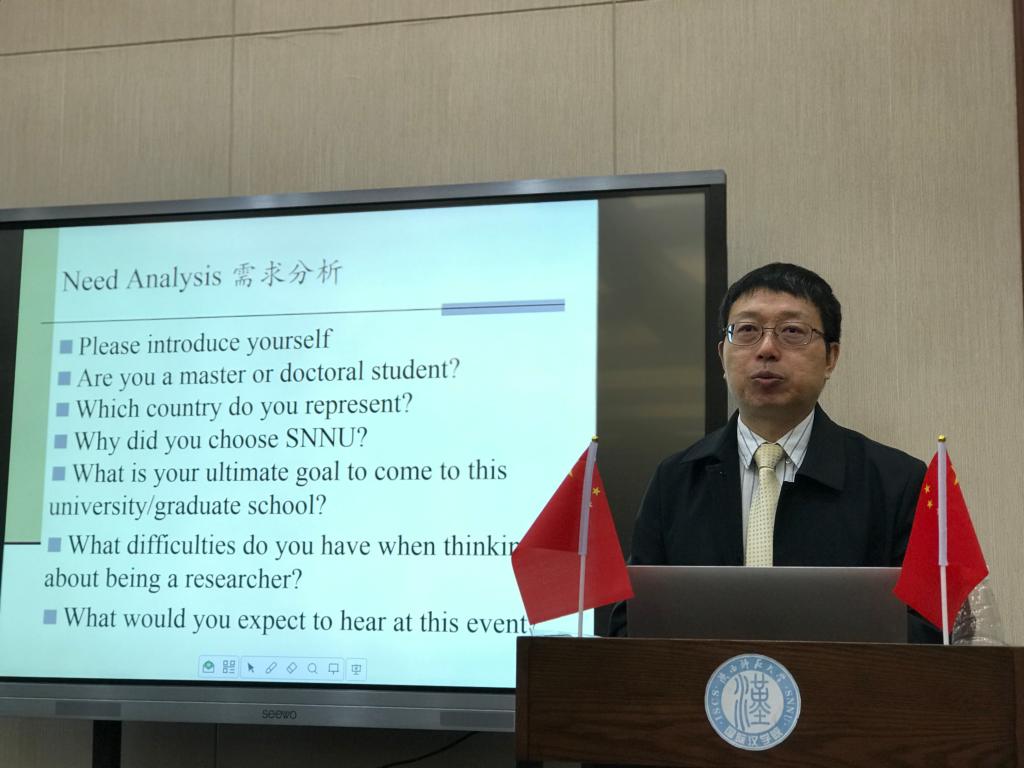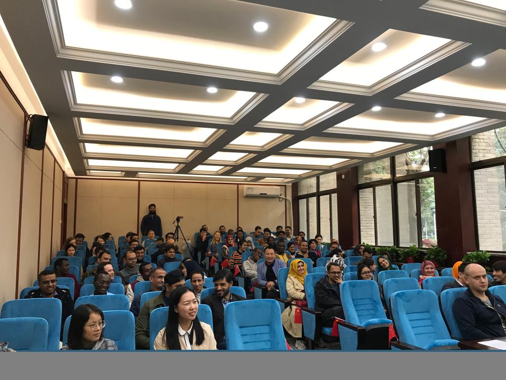 讲座开始前,到场的硕博留学生在相关工作人员的安排下,整齐有序的完成了签到工作。讲座开始,陕师大留学生管理办公室副主任李晶老师对本次讲座主讲人张宝辉教授进行了全面仔细的介绍。张宝辉教授在大家热烈的欢迎声中开始本次讲座。讲座正式开始,张宝辉老师与留学生们进行了亲切友好的互动,问大家分别来自哪个国家,选择陕师大的原因等等,整个过程轻松活泼,现场留学生们热情高涨,对张宝辉教授的讲座表现出极大兴趣,回答问题积极踊跃,互动性强。