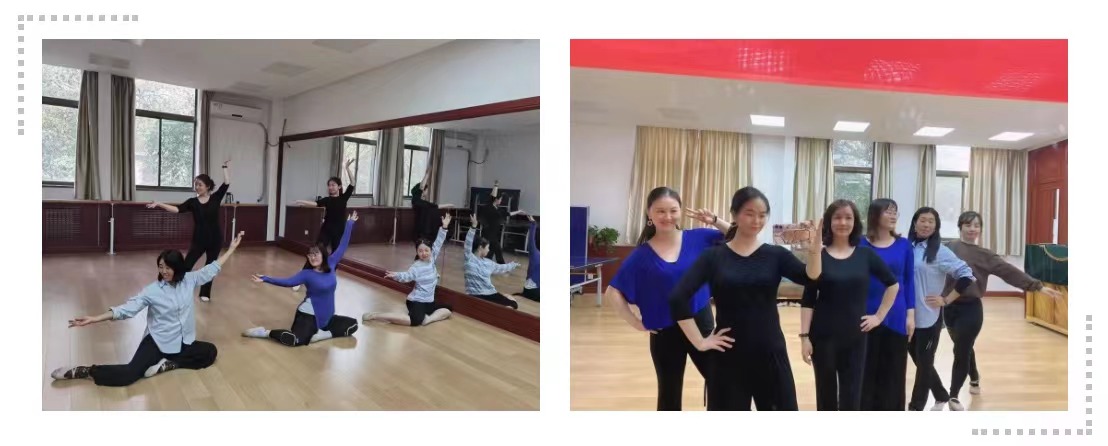 其中舞蹈小组成立已近十年,刘琳老师、李敏老师和曾柱老师结合自身特长,为我院师生义务培训中国古典舞、拉丁舞,师生共同编排的舞蹈曾多次参演校内外大型文艺活动,受广泛好评�