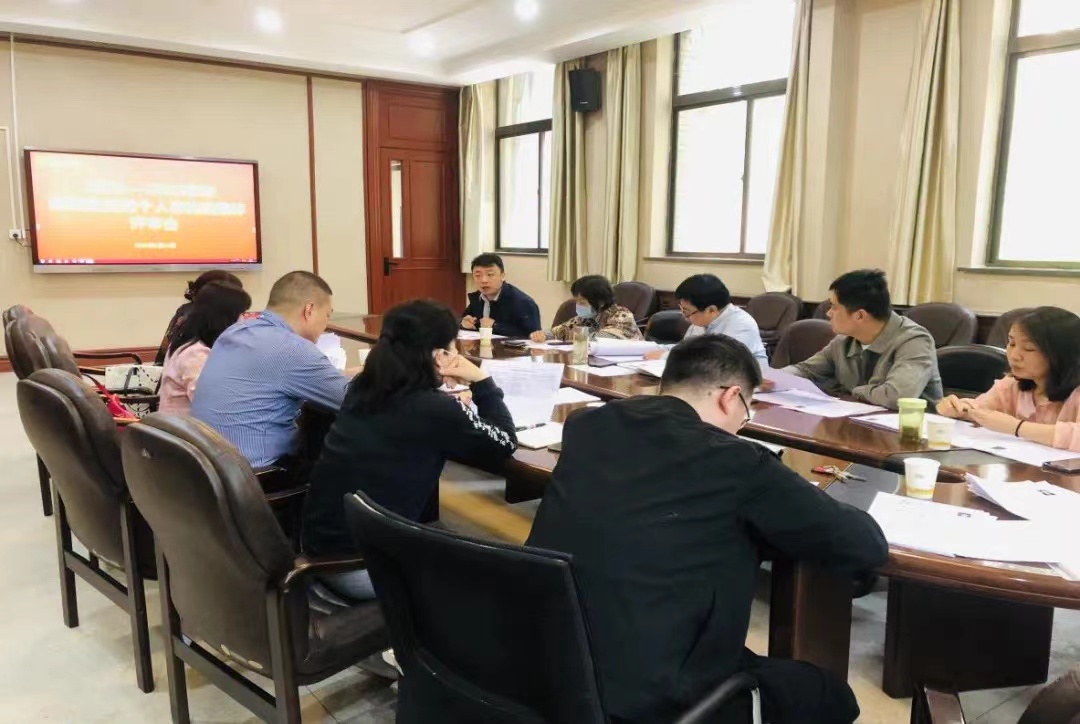 2021-2022学年研究生优秀个人和先进集体评审会在学院一层会议室举行,党总支书记马兰、院长石洛祥,党总支副书记张昊、副院长孙建伟,研究生导师邵英、曾小梦、李锦,研究生秘书何建梅、党总支组织员兼研究生辅导员朱红楠,会议由张昊主持。