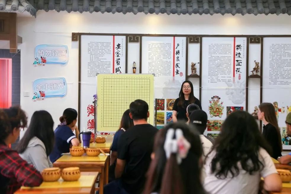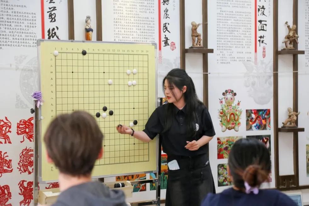 简单讲解后,留学生们就两两一组,开始对弈。围棋是中华民族的文化瑰宝,集智慧、哲学、艺术于一体。通过体验围棋中的乐趣,热爱中华文化的留学生们在助教的指导下,了解游戏规则,逐渐爱上了这个传承千年的古老游戏。